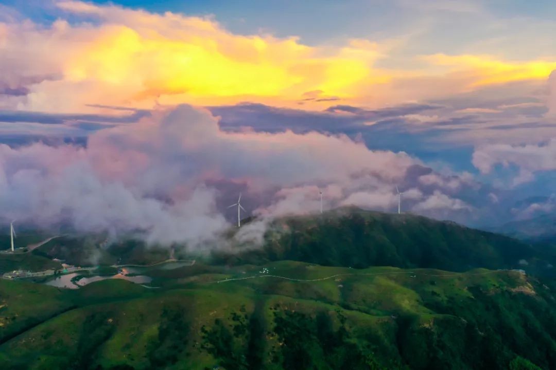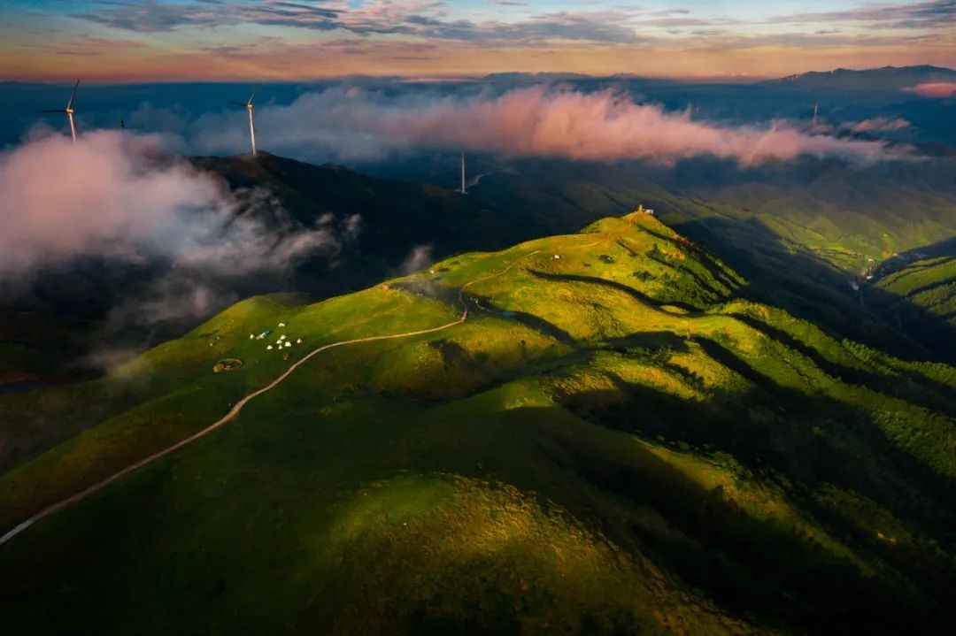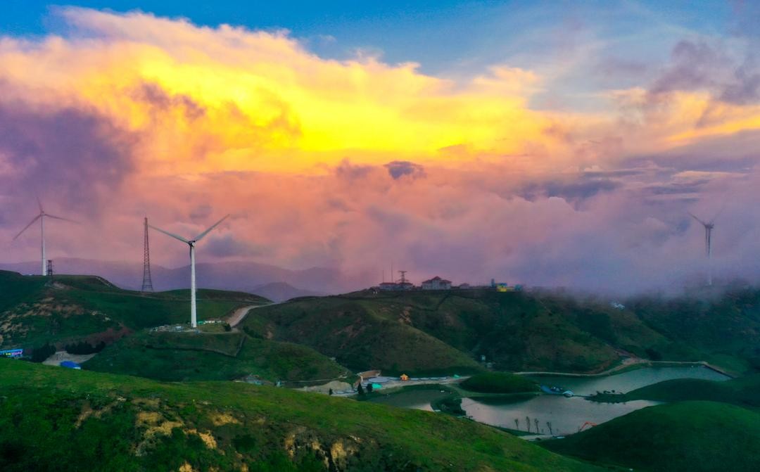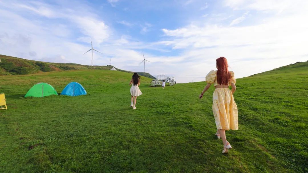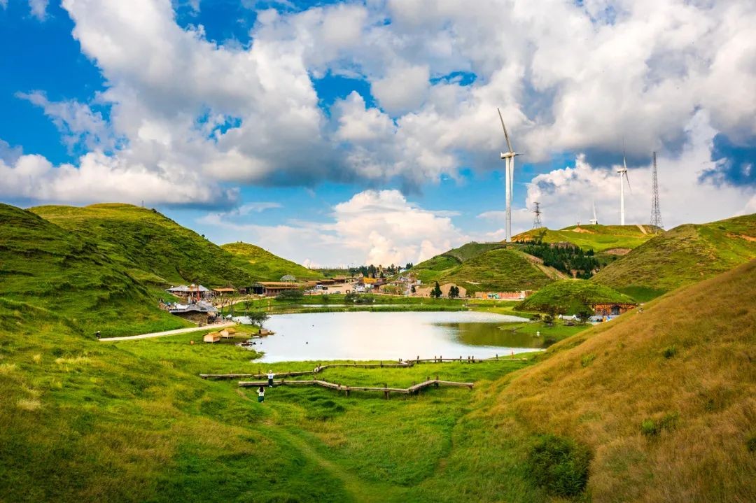 站在山头向远处眺望,一座座风车随着草原风浪自由旋转,把静态的草原变得生动且富有诗意,绝对值得你伫足停留。