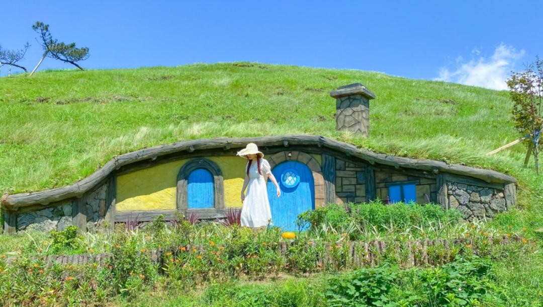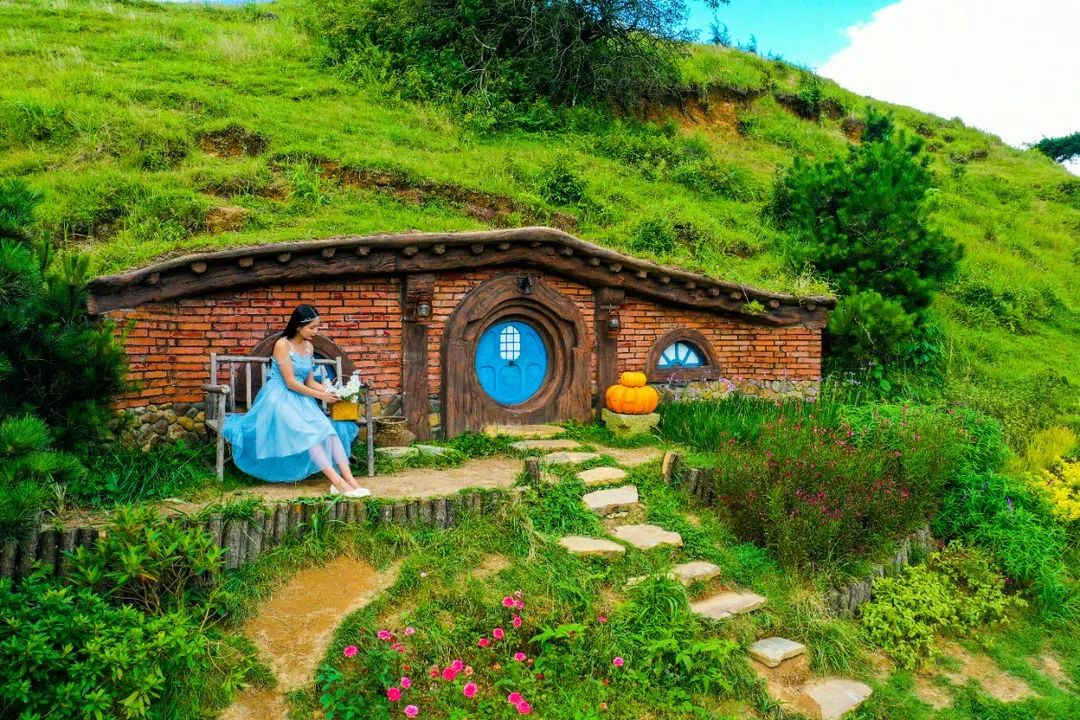 在仰天湖大草原的山丘,有一座座霍比特小屋,每一座都别具一格。还能走进去,体验世外桃源般的霍比特王国。