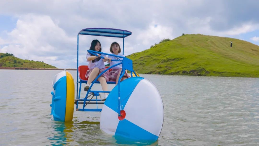 有仰天湖大草原相伴,与身边的伴侣或朋友一起划着小船,欣赏美景之余畅谈人生。阳光倾洒在湖面,映照出波光粼粼的蓝天白云,形成水天一色画卷,沉醉其中。