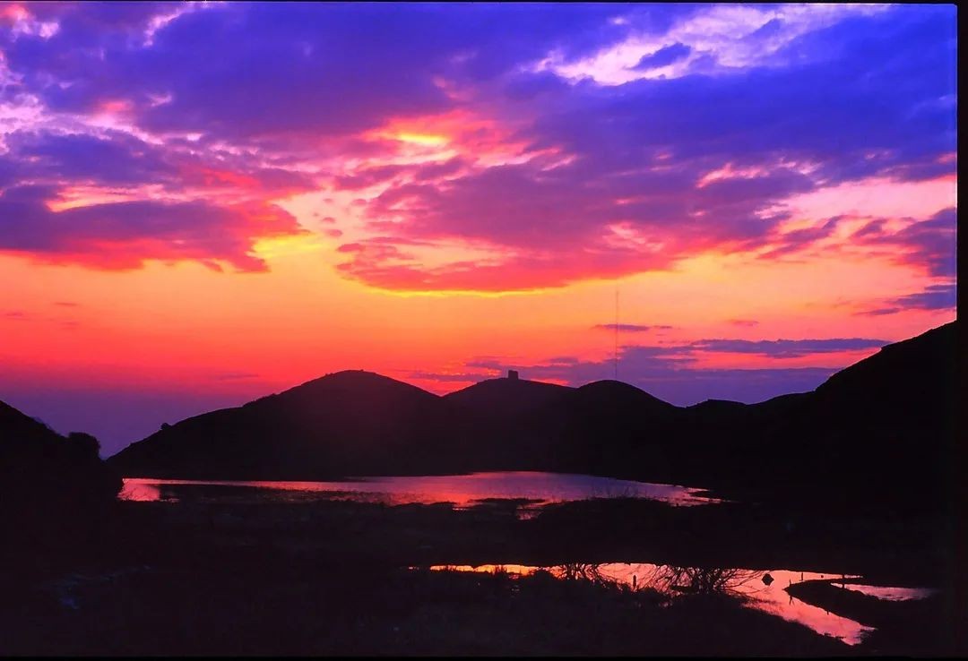 霞光的光圈随着时间变幻无穷,一会由梦幻的紫红色变成迷人的深红色,一会由幻化成少女娇羞的粉色,整个过程持续一个小时。
