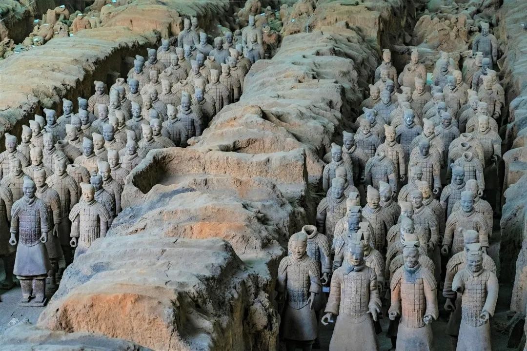 “秦王扫六合,虎视何雄哉,刑徒七十万,起土骊山隈。”秦始皇陵兵马俑博物馆位于西安市临潼区,陈列着8000多个兵马俑,是秦始皇为保护自己的陵墓而精心制作的陪葬品,兵俑身着铠甲,手持武器,神态各异,仿佛真人,被誉为世界“第八大奇迹”,是世界最大的地下军事博物馆。走进这里,你们可以目睹数千个栩栩如生的陶俑,感受古代军队的威武之势,以及秦国往日的辉煌。