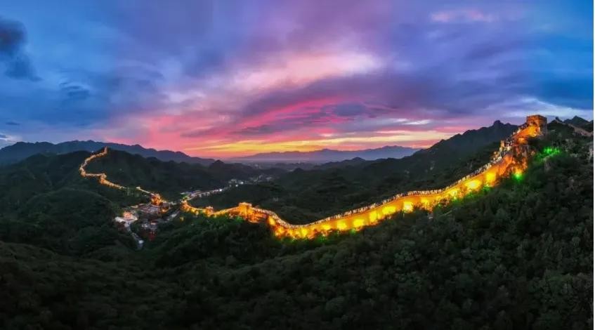 中国古长城,雄伟八达岭。八达岭长城是国家5A级旅游景区,曾被评为全国十大风景名胜之首、世界新七大奇迹之首。八达岭长城以关城为基点,分为南、北两城,北城游览长度是2565米,敌楼12座,烽火台1座;南城游览长度是1176米,敌楼7座,烽火台1座。这里的风光集巍峨险峻、秀丽苍翠于一体,是明长城景色中的精华。一定要带孩子去爬一次气势磅礴的八达岭长城,体验“不到长城非好汉”的豪情!
