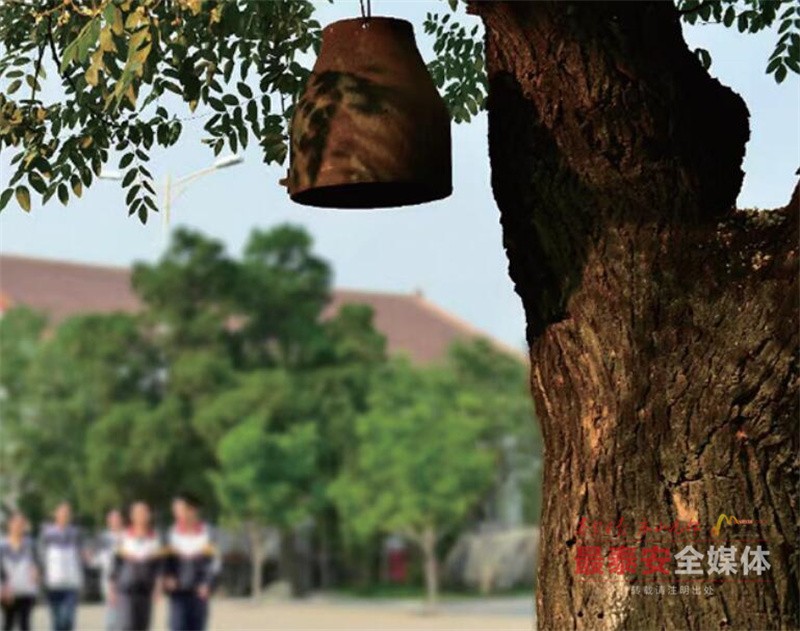 △号令钟。1948年10月,孙备五校长在泰城登云街萃英中学原址,开始泰安中学的恢复工作,把拣到的炮弹壳悬挂在学校院内老柏树上,成为泰安解放初期师生作息的号令钟。