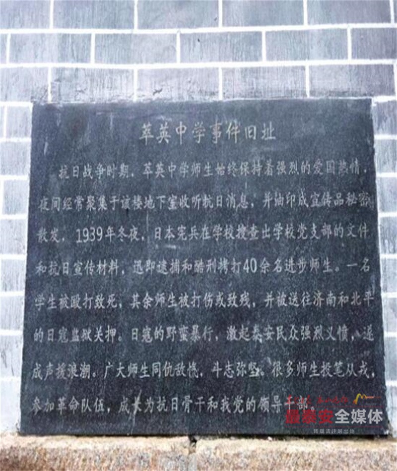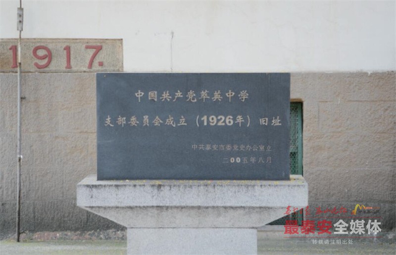 △中国共产党萃英中学支部委员会成立(1926年)旧址,中共泰安市委党史办公室2005年立。