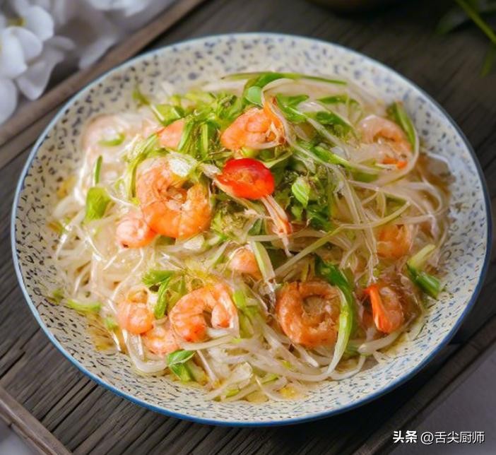 4. 加入绿豆芽:将洗净沥干的绿豆芽加入锅中,快速翻炒,保持中火,翻动均匀,确保虾皮和绿豆芽混合均匀。