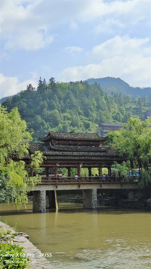 五号风雨桥。风雨桥是苗寨特色景点之一。