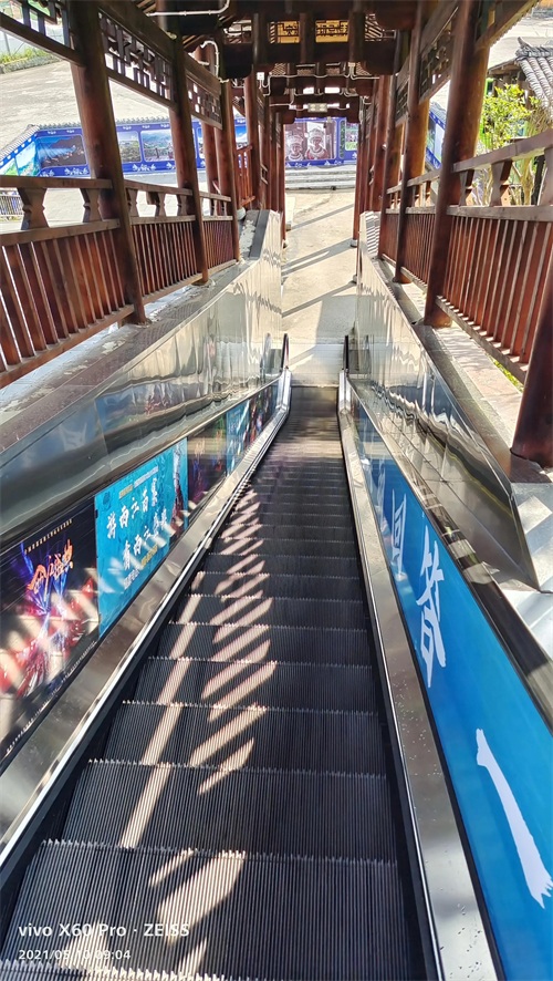 验票后进入西江千户苗寨景区的自动下行步梯。