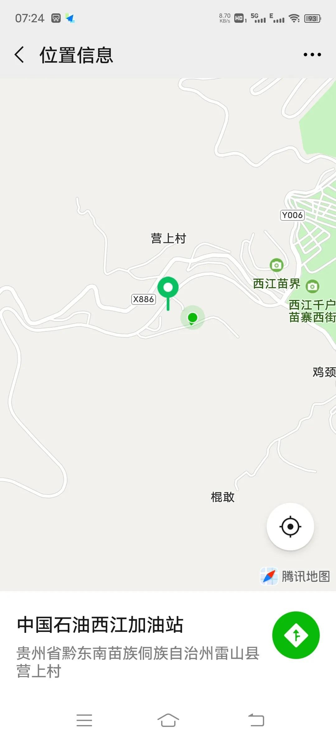 这是驻车的微信位置,加油站坡下就是西江服务区停车场,来西江千户苗寨游览的车友可以在此驻车。