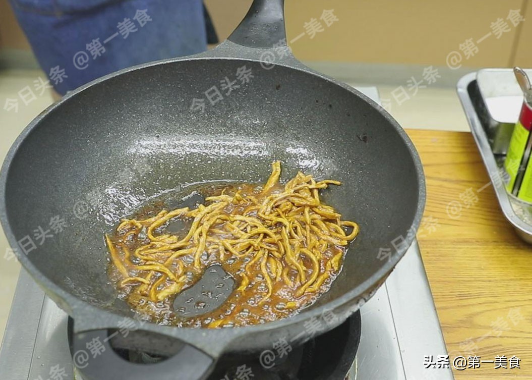 这肉丝也是配菜,不能忘了咱做的是大拉皮,肉丝不能抢了拉皮的风头。