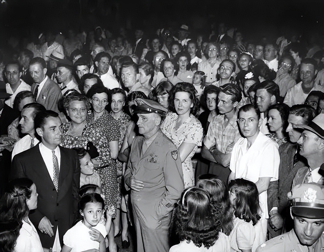 1946年,在宾夕法尼亚州的波茨敦市,美国陆军航空队司令卡尔·斯帕茨将军正在参加欢迎海外军人回家的仪式