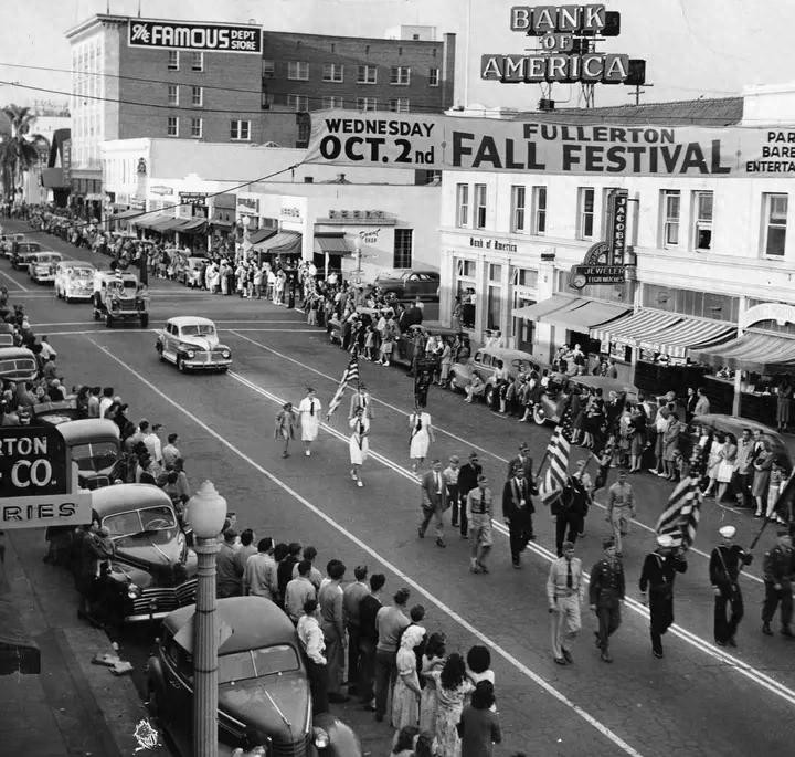 1946年10月2日,在加利福尼亚州的富勒顿市,二战退伍军人与参加过美西战争和一战的老兵们一起庆祝战争结束