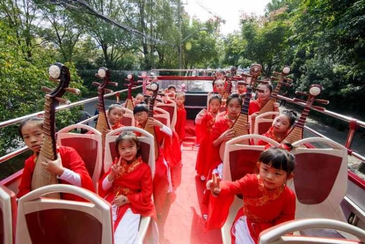 十周年之际,城市观光巴士设计了旗袍、民乐、摄影等为主题的行驶路线,上海琵琶家协会成员陆雁带领的,一群爱音乐爱琵琶的孩子们组成的“半弦乐队”登上了观光巴士。孩子们嘈嘈切切错杂弹的琵琶声,和老上海的建筑相得益彰,分外惹人喜爱。