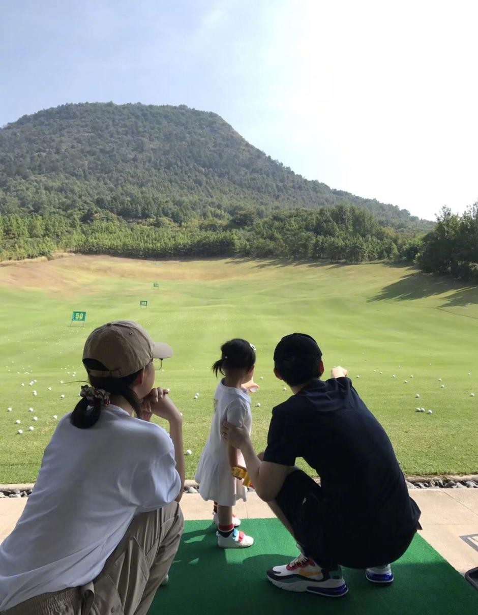 董子健还晒出过一家三口外出游玩的照片,照片中董子健在教只有3岁的女儿打高尔夫球,女儿穿着白色的小裙子,董子健和孙怡也都穿着休闲服装,蹲在女儿身边,董子健还在给女儿指着什么。他说到:"优质服务获五星好评。"真的是非常幸福的一家人了。