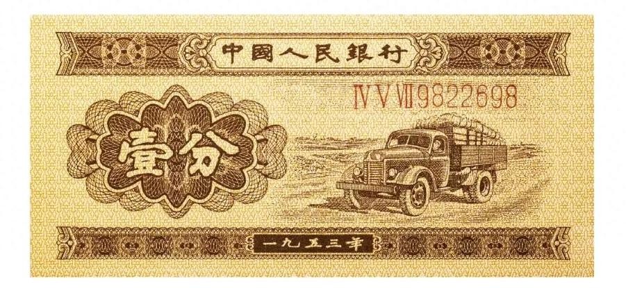 值得一提的是,这种年份的1分纸币,1953年1分纸币分为两个时代发行,一种是1953年3月发行的,另外一种就是1981年发行的。