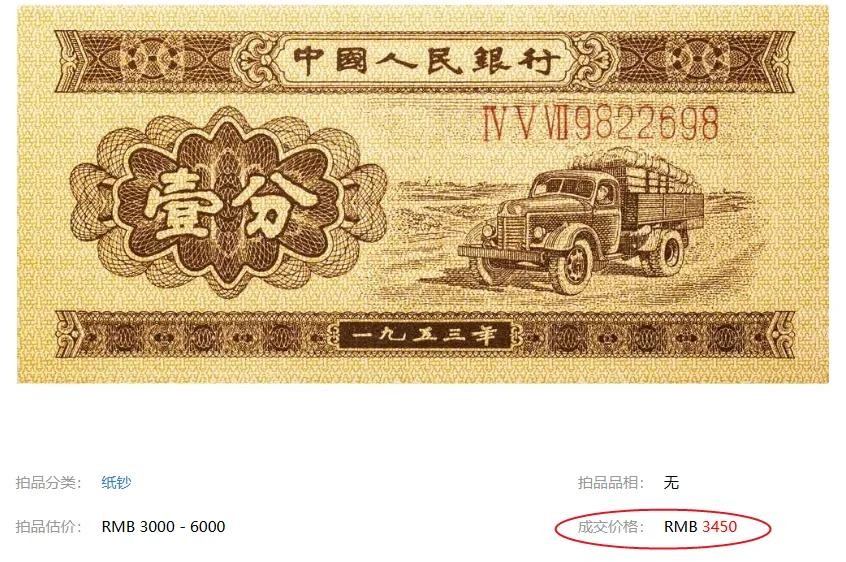 一张1953年1分钱人民币,拍出了4560元,说不定你家也有!
