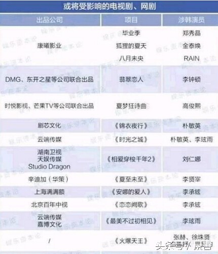 实际上,这样的传言,广电总局等有关方面始终没有实捶,但向来是春江水暖鸭先知的电视台以及各大制片公司,早已不"韩"而栗。多部未播韩剧及待拍项目被无期限叫停!