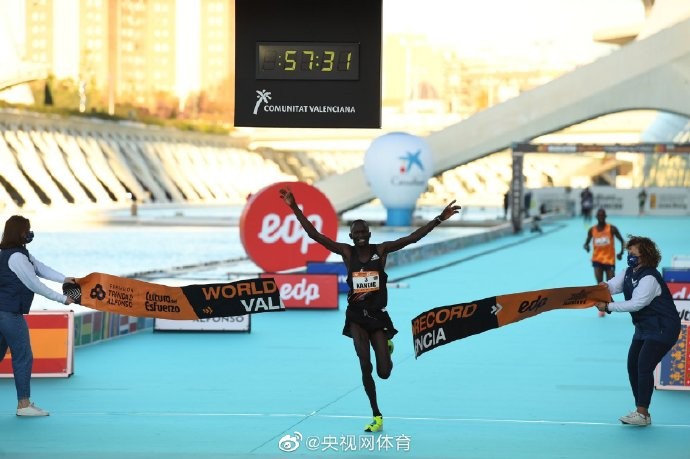 【男子半马世界纪录被打破 】北京时间12月6日,在今天举行的瓦伦西亚马拉松比赛中,肯尼亚小将Kibiwott Kandie半马跑出57分32秒的成绩,打破了此前58分01秒的半马世界纪录,人类半马跑进58分大关!
