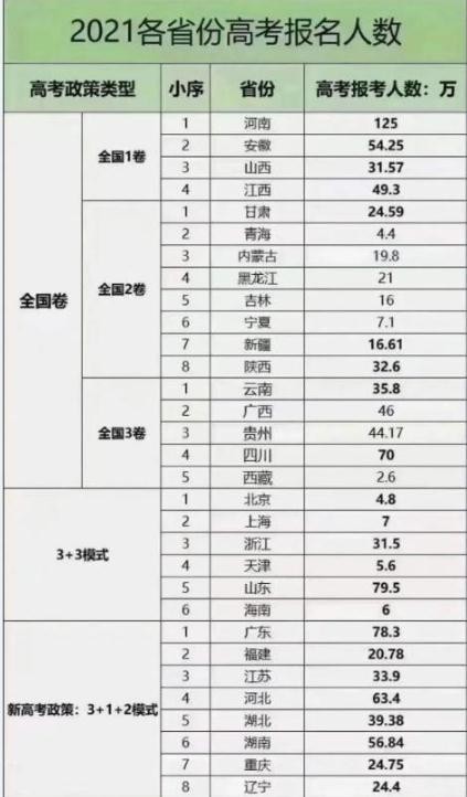 根据相关统计,今年的高考报名人数总共有1,078万,其中河北省更是以125万的人数,占据榜首。