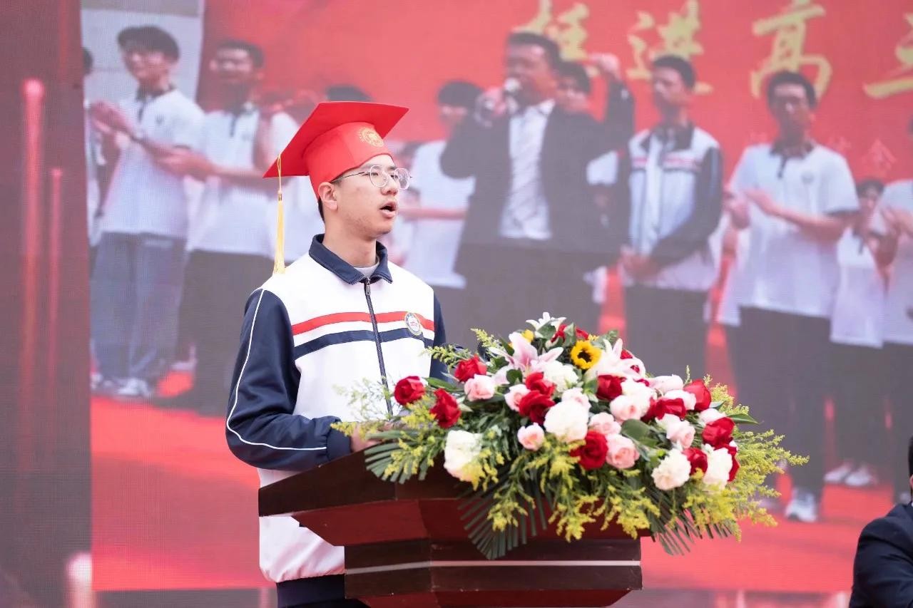 学生代表金国兴同学用饱含深情的话语感恩父母的生养之恩,感恩师长的培养之恩,感谢同窗的陪伴之情,并鼓励同学们十八而志,勇于擘画青春蓝图,拼一季峥嵘,换终身无悔。