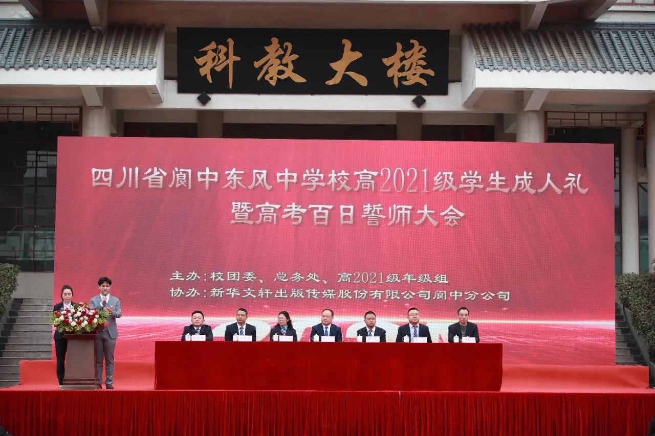 2月27日上午,阆中东风中学校2021级高三成人礼暨百日誓师大会在学校运动场隆重举行。学校领导、高三全体师生和学生家长们齐聚一堂,共同见证高三学生的成长蜕变,共同吹响高考冲刺的逐梦号角。