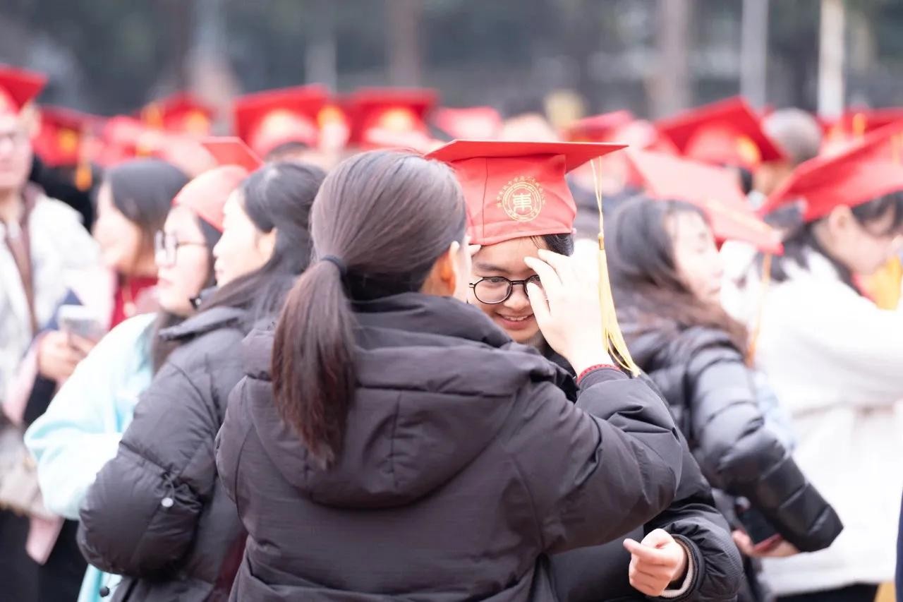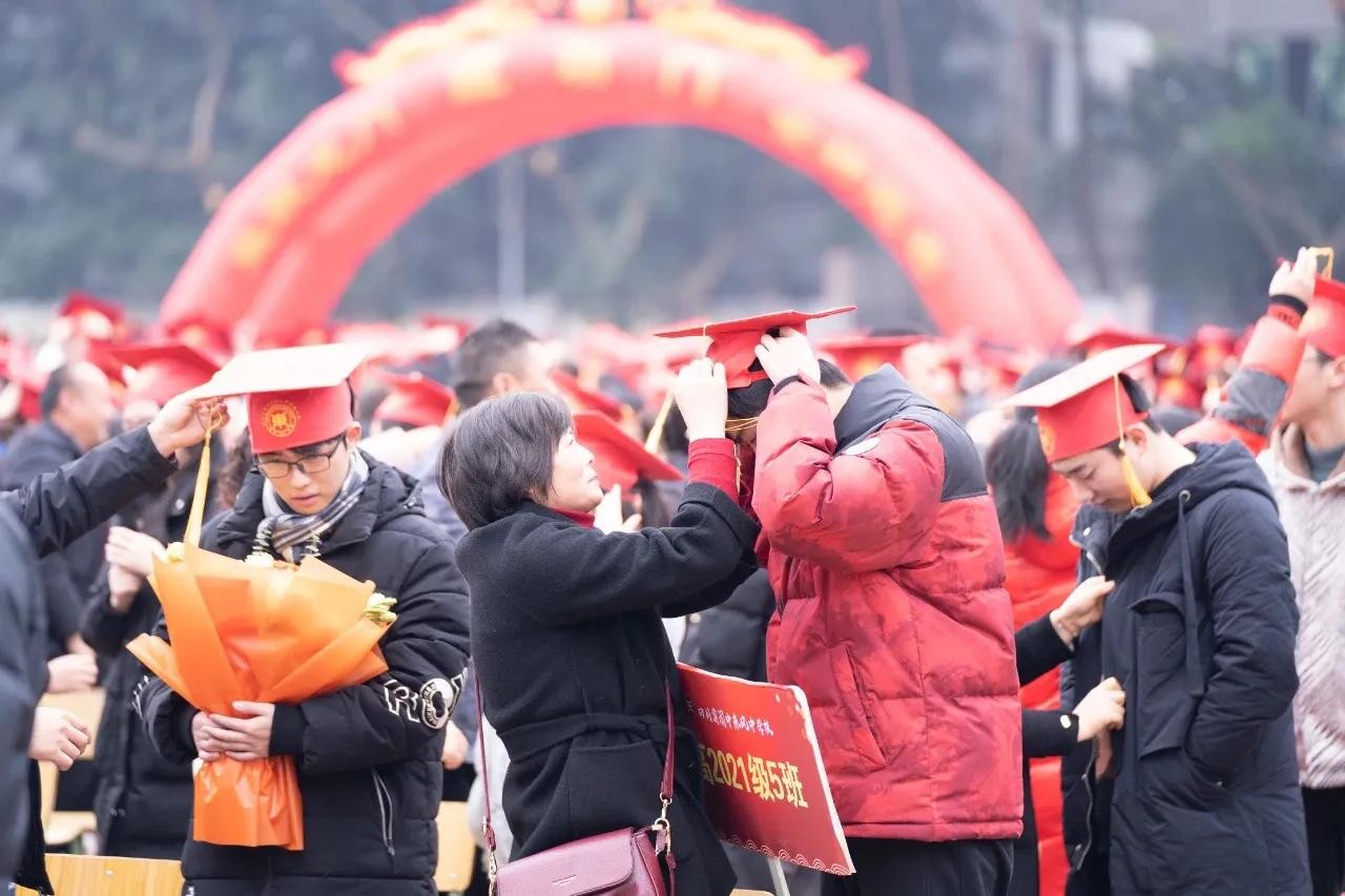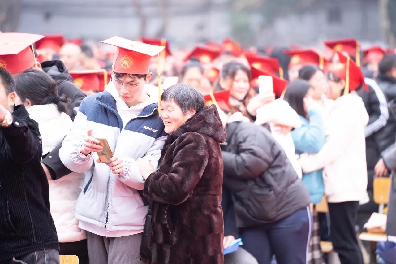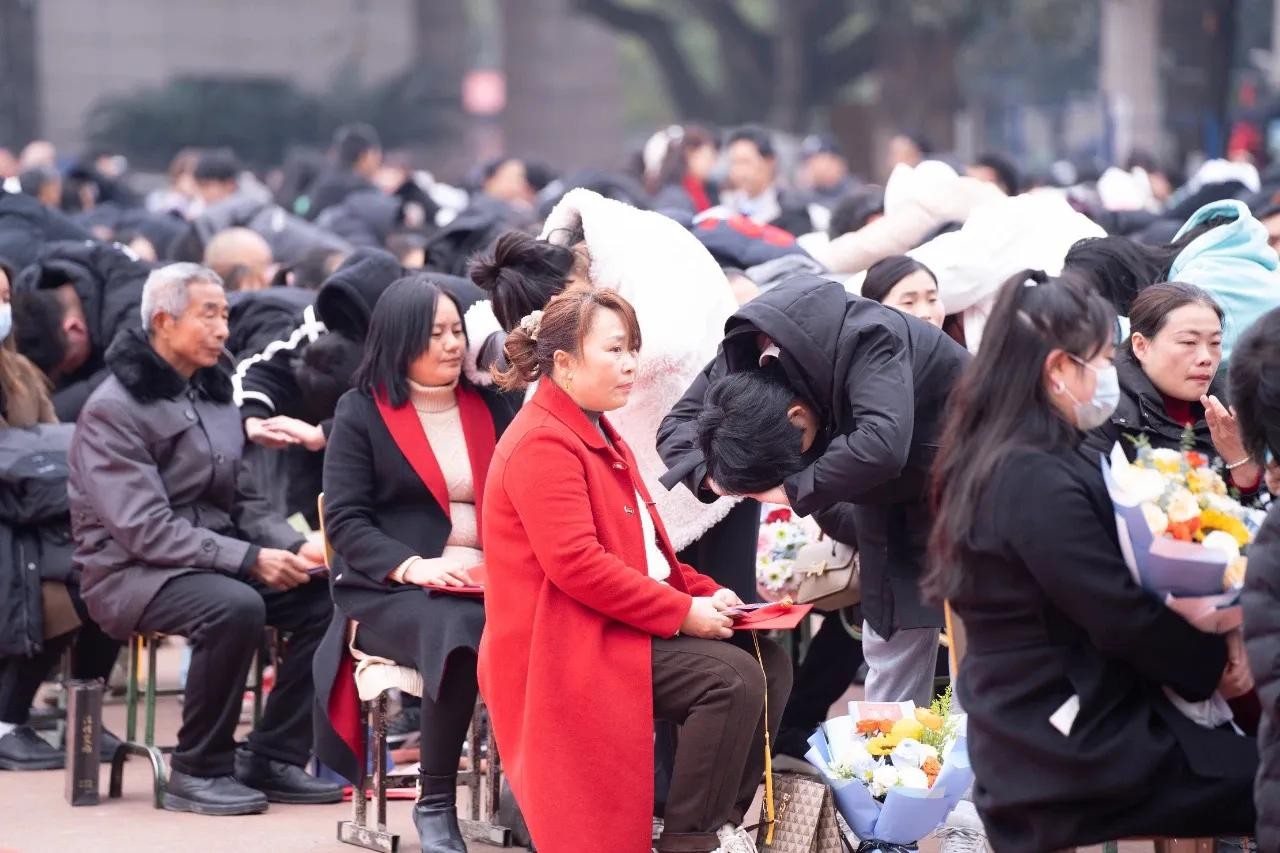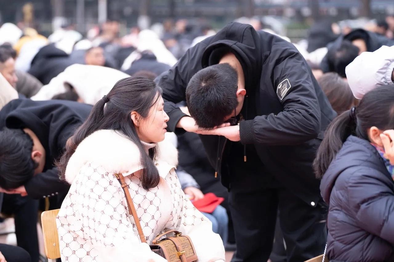 全体高三学生面对自己的父母行拜谢礼,90度姿态的三次鞠躬,表达了他们对父母18年陪伴与守候的深深感激。一次次温暖的相拥、一句句深情的话语,令许多家长热泪盈眶……加冠礼成,重任在肩,足之所旅,一路繁花。