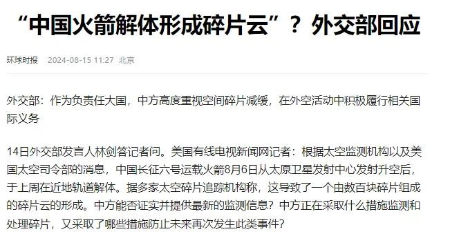 居然沉默了,没有人说话了?此前“中国火箭解体形成碎片云”被翻来覆去的说, 甚至上升到了外交部回答,这下美国居然针对自己产生的太空碎片,没有什么反应了,你不说他不说,大家真的就不知道了?