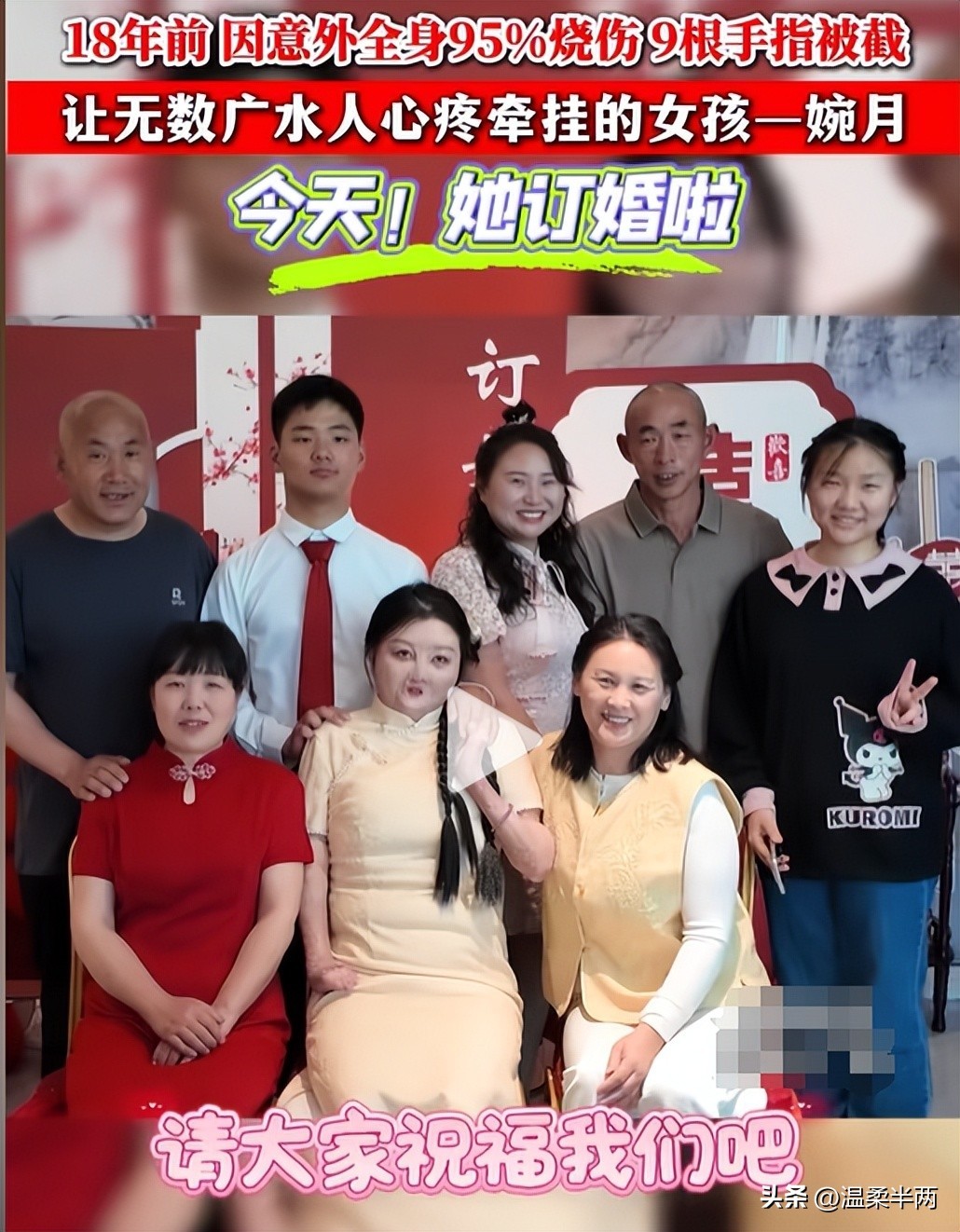 18年前,因意外全身95%大面积烧伤,9根手指被截肢,让无数人心疼牵挂的女孩——婉月,4月18日这天,订婚了!
