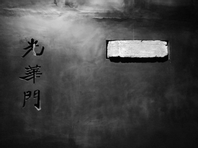 序厅的尽头是七扇斜开着的门,分别代表雨花门、光华门、中华门、中山门、通济门、武定门、水西门,这七座城门,是南京保卫战期间城墙上战斗最为激烈的地方。“城门”上各镶嵌一块古老的明城砖,寓意南京城破之后南京大屠杀即将发生。