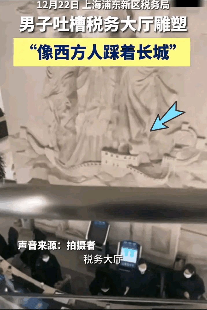 居心何在?上海税务厅惊现,裸露女神踩踏长城浮雕,是刻意为之?