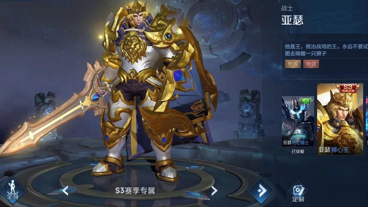 S3赛季专属皮肤:狮心王——亚瑟。