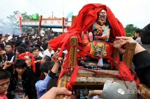 说起这一习俗,蛋哥确实有话可讲。在我们老家有一习俗,但凡每家男孩,在八岁这个年龄,都要经历一次“穿杖”的洗礼。当天凌晨5点就要到祠堂毕恭毕敬地抱着经过“公祖”“请”过的“婆祖”,走遍全村(如果村里有刚盖好的新房,还要进去走一遭,俗称“踩房”),然后集中到村委大队,置于搭好的台上,供有需求的人前来祭拜(一般都是问命、求平安、求财运的多)。等到十点,这些八岁小童就在“公祖”的请神咒语下不自觉的“抽搐”起来,本人丝毫不知道是这么一回事,这用海南话说叫“降公”。