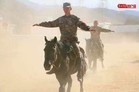 谁敢横刀立马?骑兵的威风并非轻易可得。新兵在上马之前要骑近两个月的墙头,左摇右晃,感受重心平衡,练习斩劈动作。训练一上午,常常是屁股磨得不敢坐下,胳膊酸得拿不起筷子。即使这样苦练基本功,也难以保证不落下马。