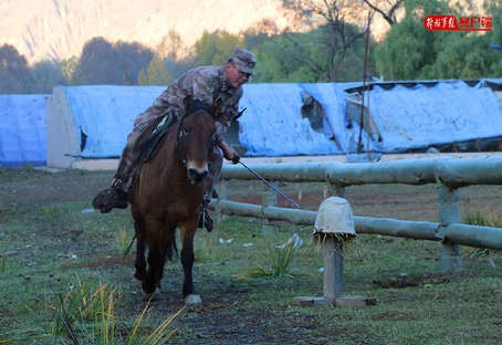 结合营区驻扎环境和民情社情,该营所属两个骑兵连分别担负着甘南、黄南两个自治州的应急处突任务。该营营长程晓告诉笔者:“新体制赋予了我们新任务,必须把全营官兵都打造成‘马上是雄鹰,马下如猛虎’的‘两栖精兵’,才能有效履行新职能新使命。”