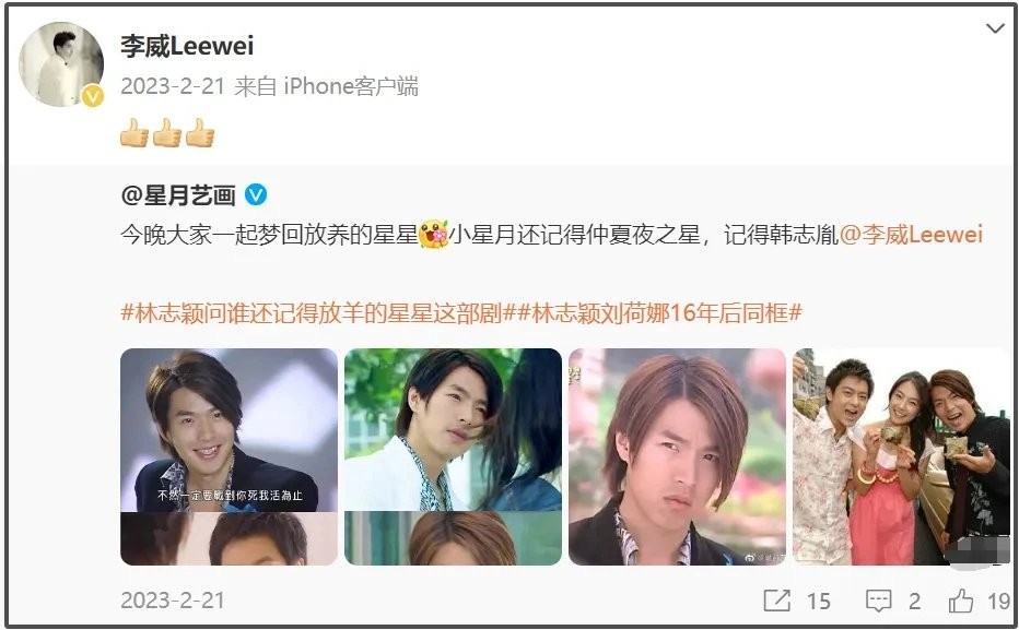 2000年李威与林佑威组成WeWe组合正式出道,因其长相出众,除了唱歌,还陆续出演了多部偶像剧,李威很快便成为了台娱炙手可热的男明星。