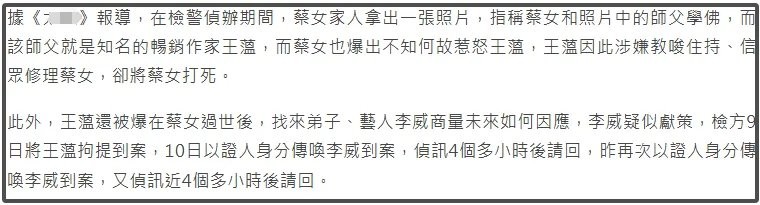 据台媒报道,44岁男星李威卷入杀人案,已经被传讯两次。该案起因是某女子跟名为王蕴的作家学佛,不知道该女子是如何得罪了王蕴,于是王蕴便授意自己的两位信徒打死了该女子,并将其200万的积蓄转走。