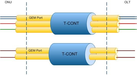 T-CONT是GPON系统中上行带宽最基本的控制单元。每个T-CONT由Alloc-ID来唯一标识。Alloc-ID由OLT每个GPON端口分配,即OLT同一GPON端口下的ONU不存在Alloc-ID相同的T-CONT。