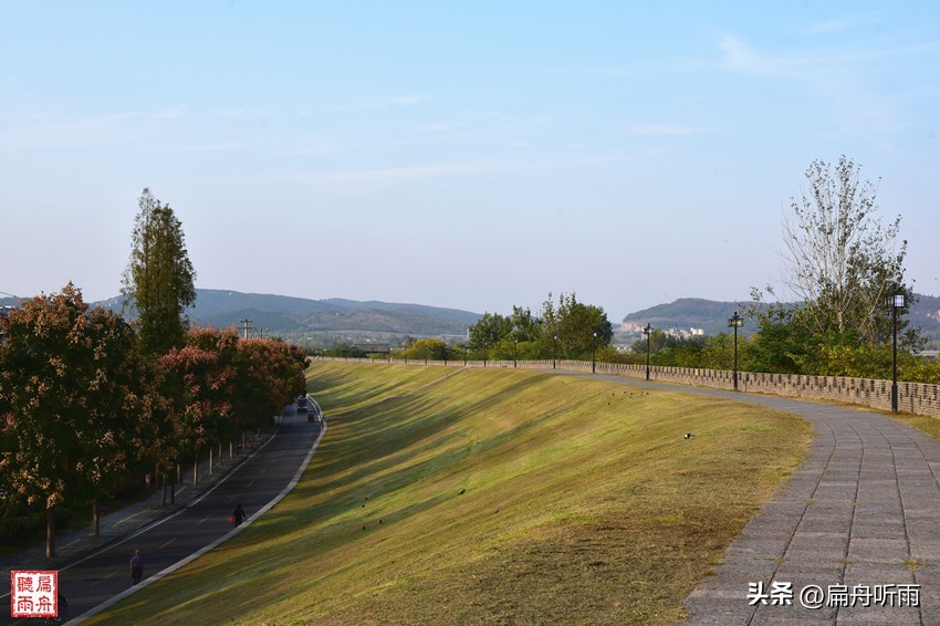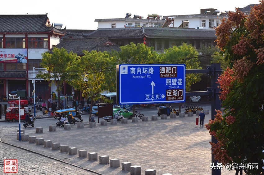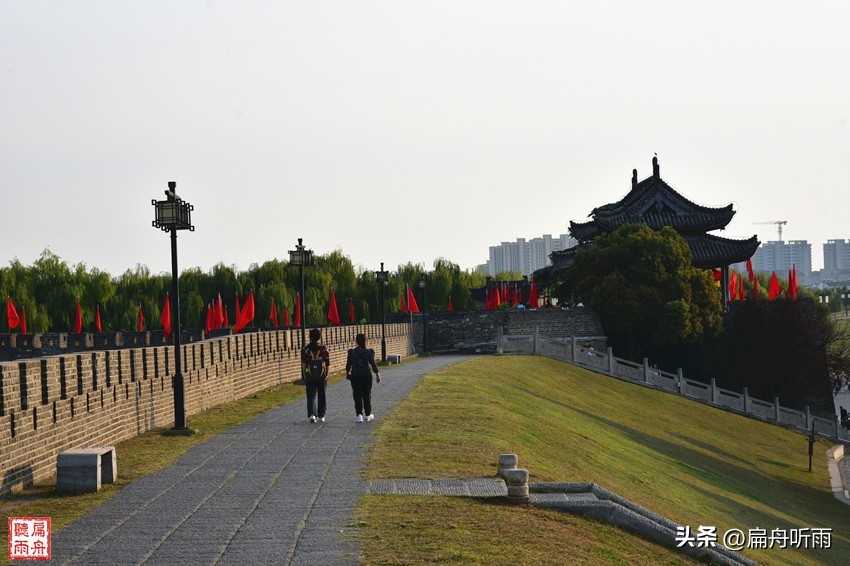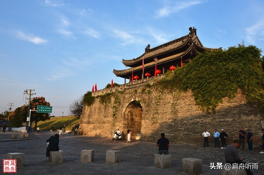 从宾阳门的城楼上,沿着城墙不管是向南还是向北,均是视野开阔,向南,即可步行到南门通淝门,向北则可漫步到北门靖淮门,且可北望到高高横亘的八公山,畅想一下千年之遥风声鹤唳草木皆兵的境况。