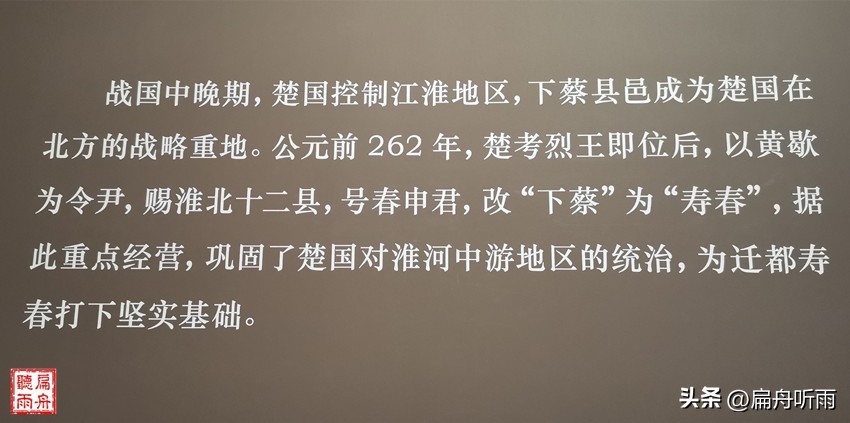 寿春本是楚考烈王分封给春申君黄歇的封地,当年是以给春申君祝寿的名义加封的,所以就叫了寿春。后来,在秦始皇的军兵的步步紧逼之下,楚国将都城东迁于此,这里便成了郢都。建都18年后,郢都被秦军占领,楚国灭亡。