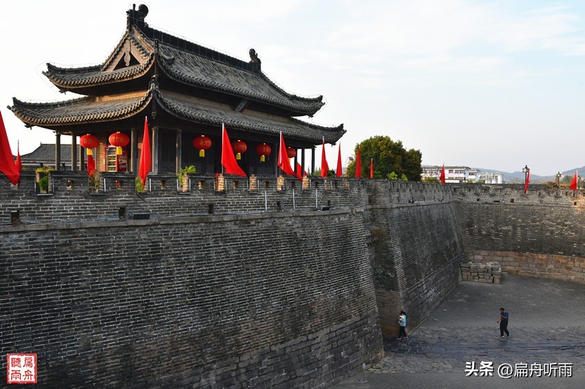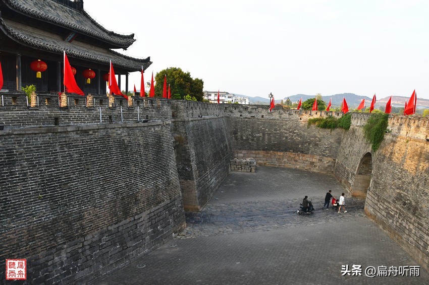 登上城楼,向下望去,可见门内的瓮城,瓮城的内门和外门并不直通,而是错位斜向,即使敌兵从外城门攻入,也形同瓮中之鳖,等着城上的箭矢和石块的攻击。