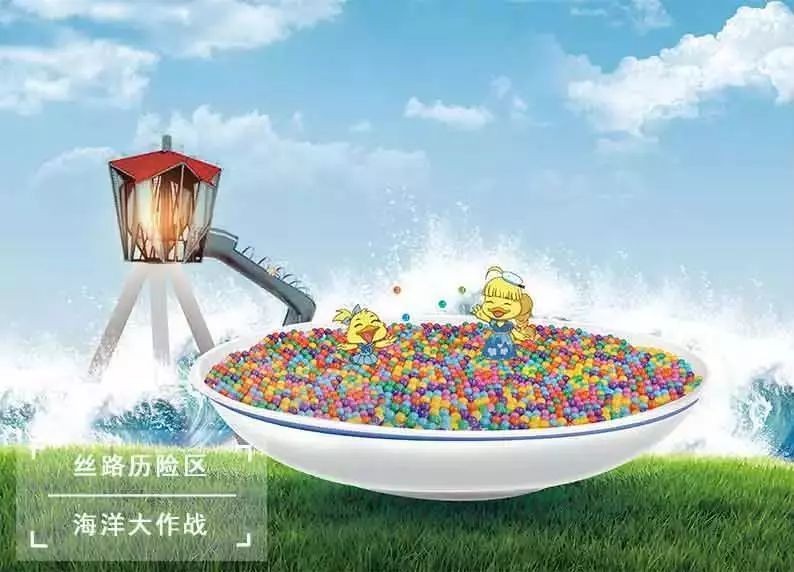 穿过南海起航区,就来到了丝路历险区。这里有个全世界最大的青花瓷碗,碗里填充着数百万个的海洋球,让大家能够肆意地撒欢玩乐。这里还有一连串海丝历险游乐项目,等着你来探险。