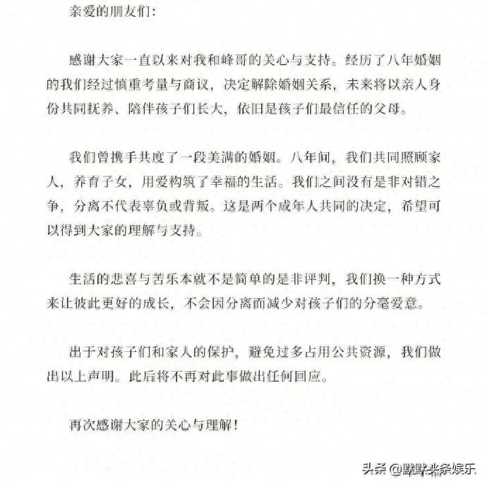 综上所述,汪峰和章子怡的离婚事件再次引发了大众对于婚姻稳定性的关注。尽管我们无法探究他们的具体情况和原因,但这个事件可以提醒我们,婚姻的长久性需要夫妻双方的共同努力、沟通和支持。