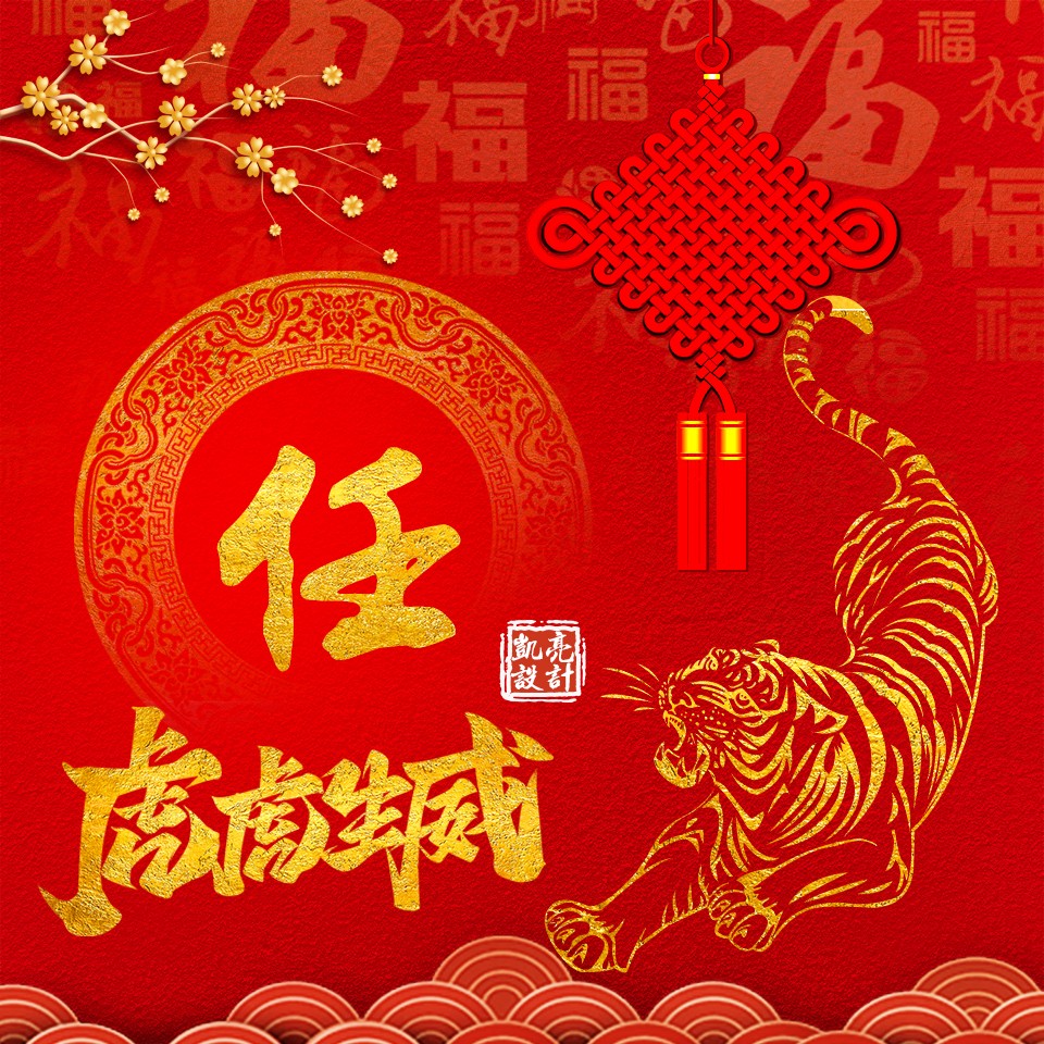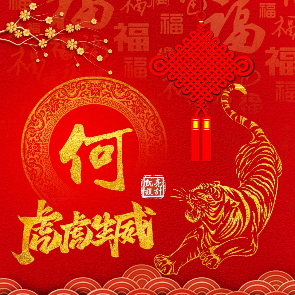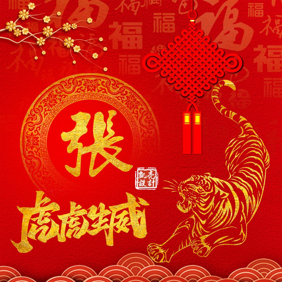 百家姓氏头像壁纸 2022喜庆新年虎年虎虎生威红色红红火火百福头像