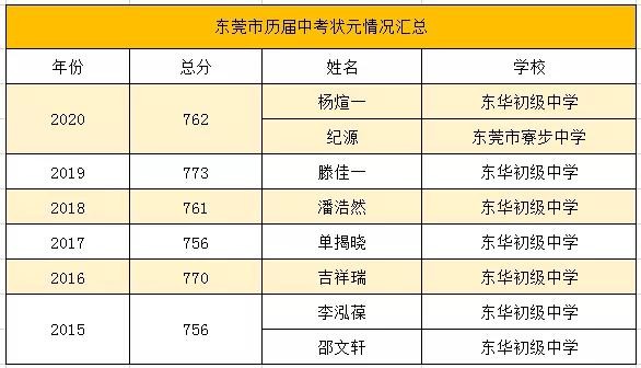 2015年 - 2020年,东莞中考状元榜,东华总是霸占(或并列)第一!
