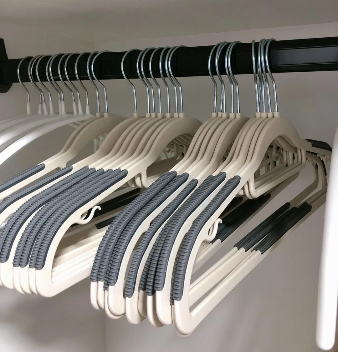 搬家的时候买了100个这种干湿两用的衣架,把家里乱七八糟的衣架都换掉,整洁了不少!
