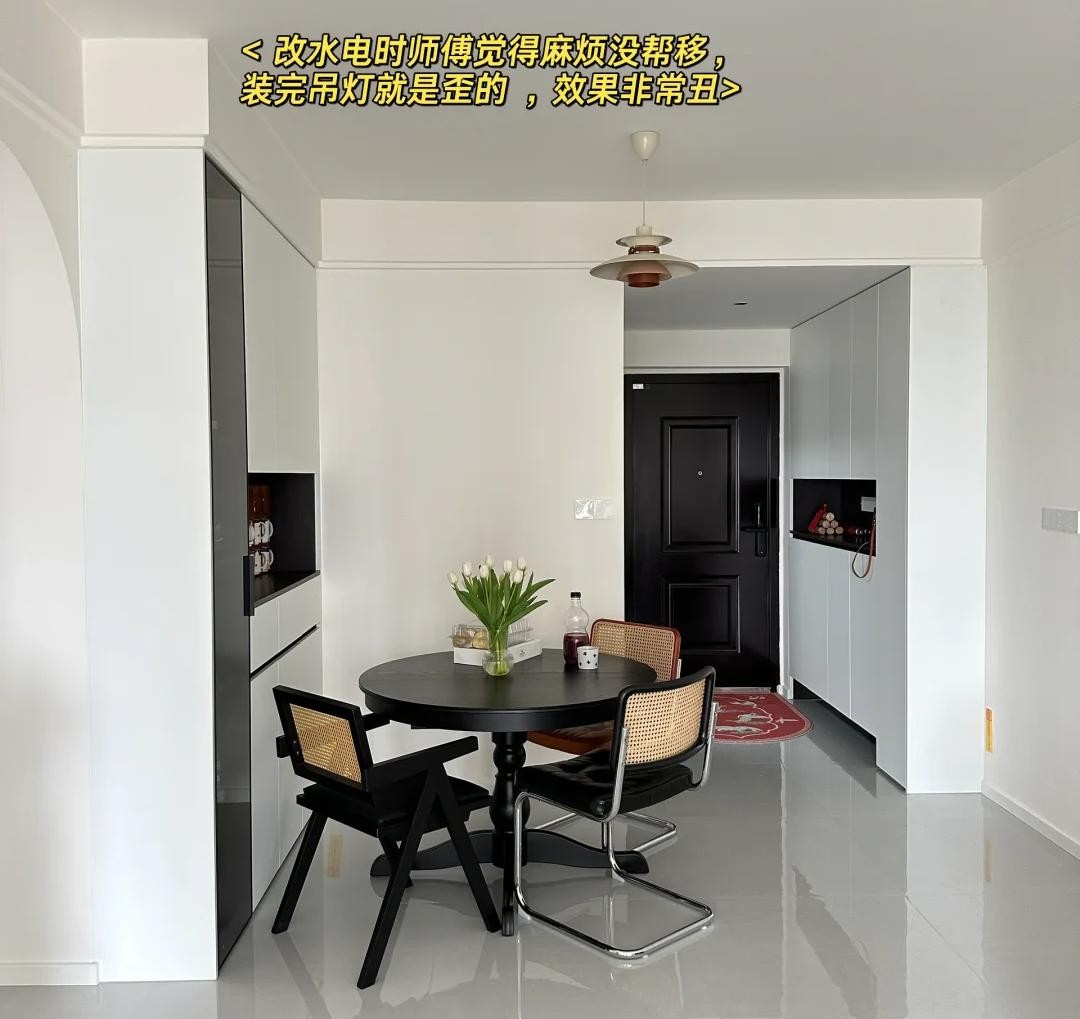 毛坯交付的时候灯位不正水电没改好的,或者精装交付的时候灯位不正不好拆改的,吊灯不在餐桌的正上房,真是逼死强迫症!