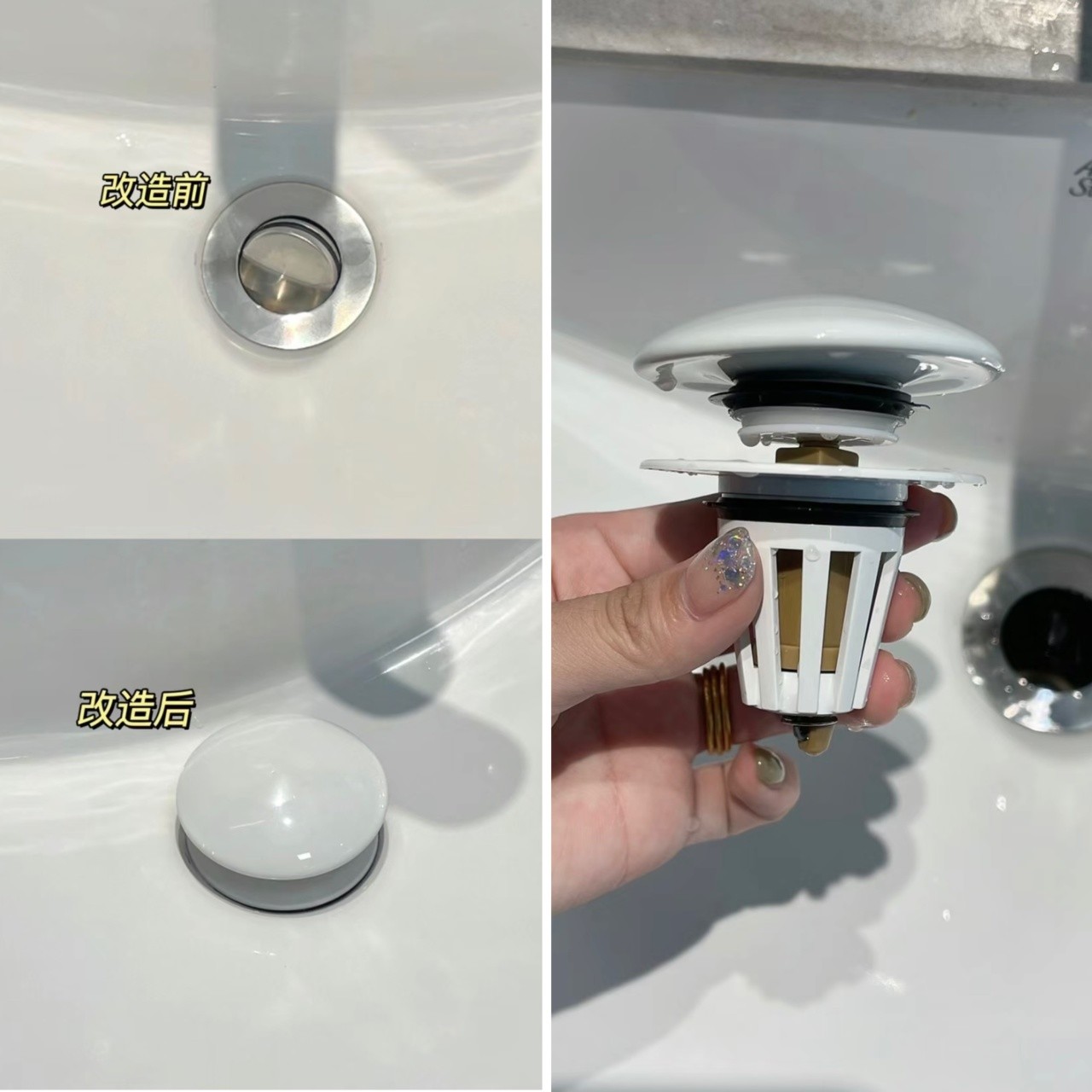 美观又可以过滤脏东西和头发,防止堵塞管道,按压就能放水。