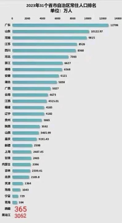 2023年内地31个省市自治区常住人口发布:连续3年河南和东三省降