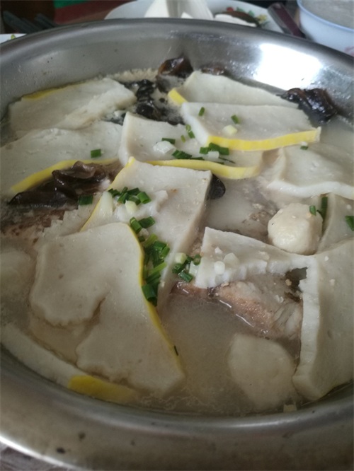 一直大火烧,保持沸腾状态,直至糖色奶白后下入木耳、鱼糕,也可放些菌类,一道美味的翘嘴鱼汤就做好了
