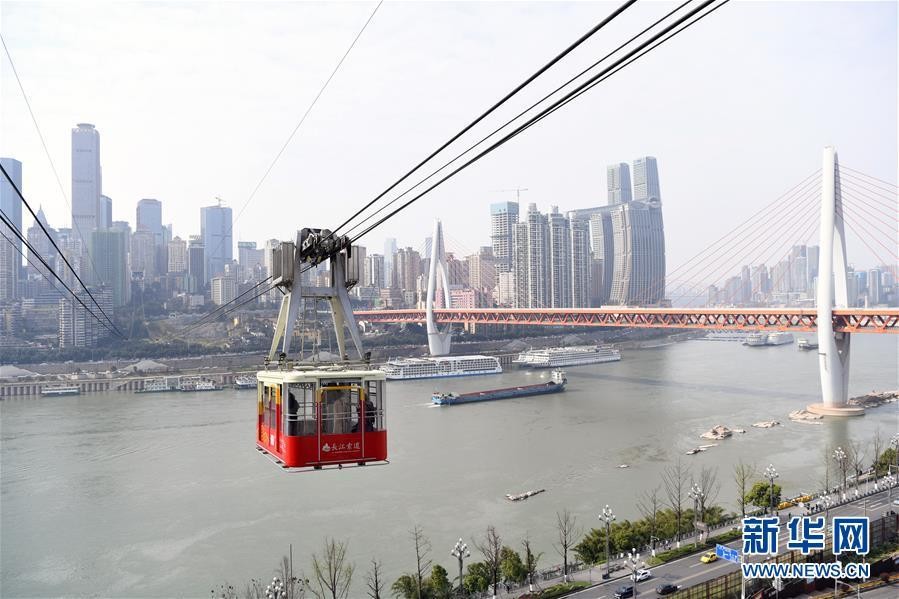 3月18日,恢复运行的重庆长江索道载客过江。 当日,重庆索道公司发布消息称,3月18日起,长江索道恢复运行,每日运行时间暂定为7:30-19:00,后期将根据疫情、客流变化适时调整。 新华社记者 唐奕 摄