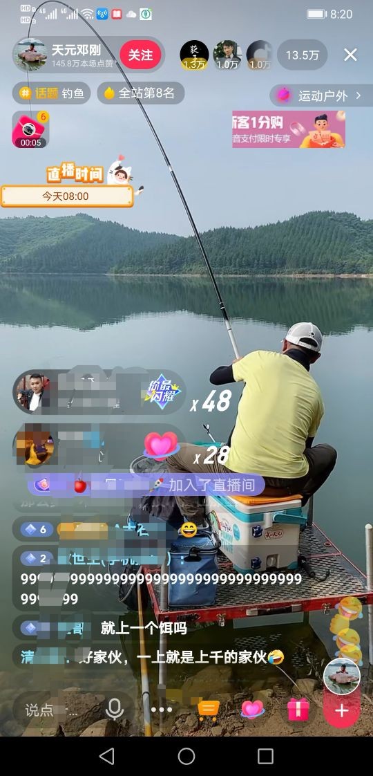 随着邓刚老师中鱼,直播间人气持续增加一度飙升到16万多。